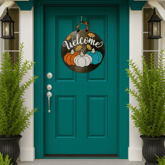 Welcome Fall Pumpkins & Leaves Door Hanger