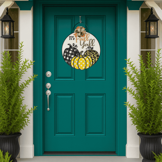 Celebrate the beauty of fall with our handcrafted fall door hangers. Featuring autumn leaves, pumpkins, and warm harvest colors, each piece is hand-painted on durable MDF wood and sealed with UV-resistant paint for lasting charm. Perfect for front porches, entryways, or gifting, our 15" round signs add a cozy seasonal touch to your home. Ribbon colors may vary, making each design a unique, one-of-a-kind creation.