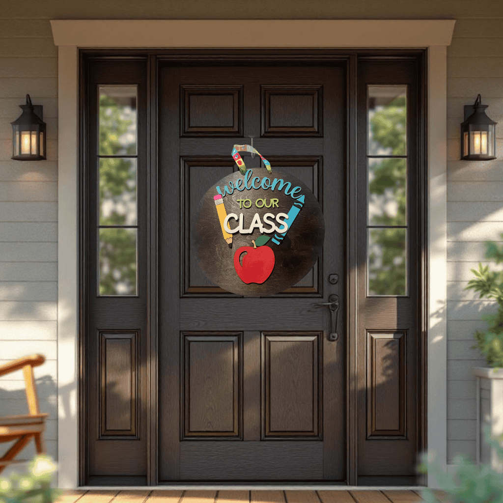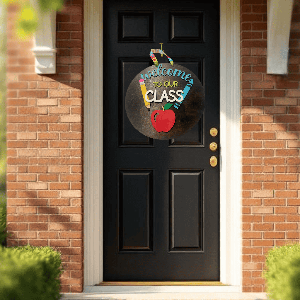 Create a welcoming classroom atmosphere with our Welcome to Our Class Door Hanger. Featuring colorful pencils, an apple, and playful lettering, this cheerful sign greets students and parents with warmth and positivity.